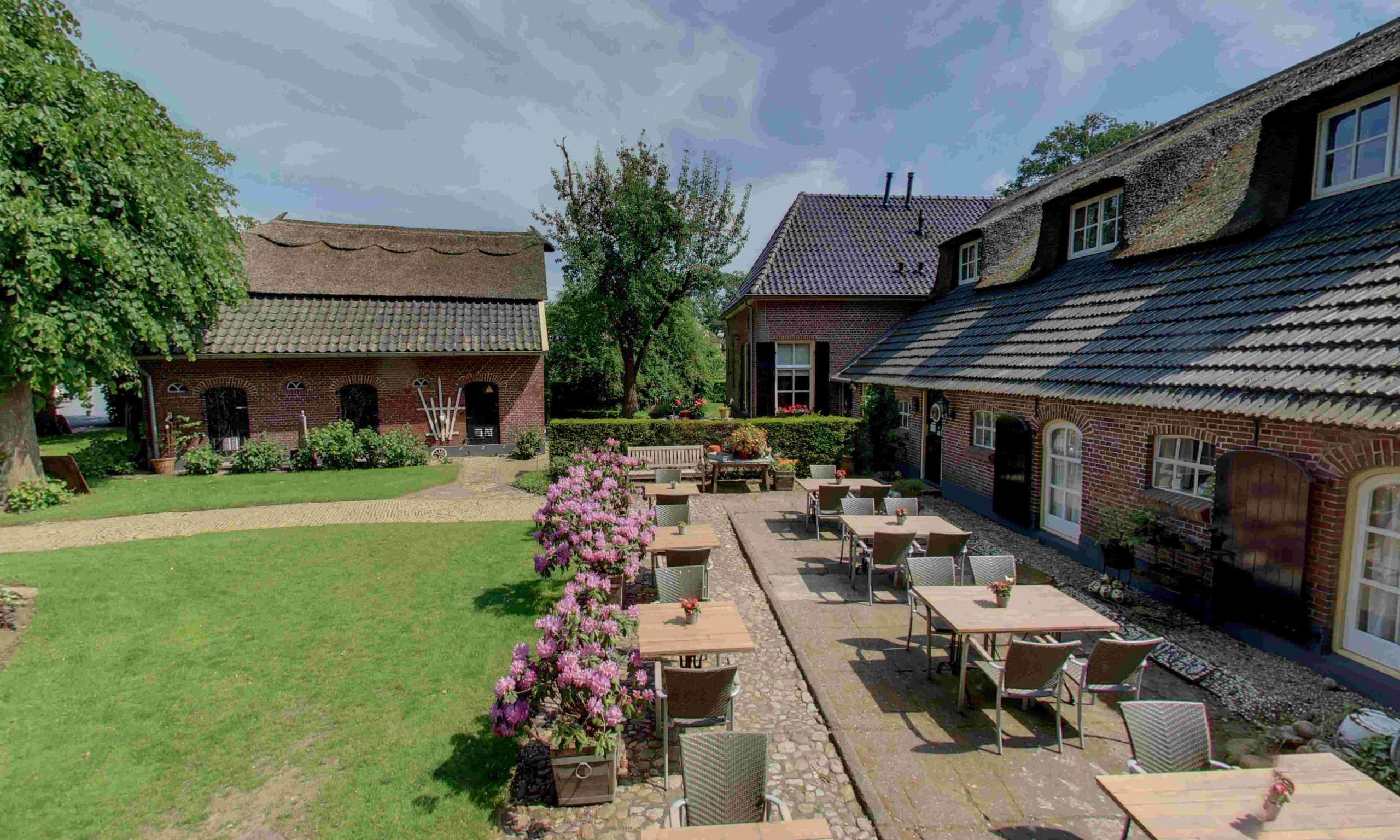 Er is een ruime tuin met een eigen terras voor uw groep. Voor de kinderen is er een gazon om op te spelen. De grazende koeien kijken toe. De sfeer komt van de nostalgie van een statige boerderij die gebouwd is in 1888.